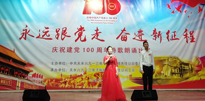 6月17日,公司排練了六人詩歌朗誦《黨啊,我為你自豪》參加了甘肅省國防系統(tǒng)建黨百年文藝匯演暨國防工匠表彰活動。