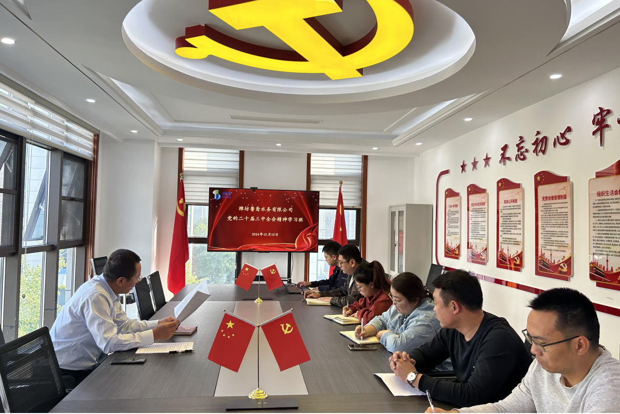 濰坊魯鳶水務(wù)有限公司黨支部組織多種形式學(xué)習(xí)傳達(dá)黨的二十屆三中全會(huì)精神,迅速掀起學(xué)習(xí)貫徹全會(huì)精神熱潮。通過集中領(lǐng)學(xué)、個(gè)人自學(xué)、交流研討等形式,全面認(rèn)真學(xué)習(xí)了習(xí)近平總書記重要講話、中央《決定》及全會(huì)《公報(bào)》,并圍繞企業(yè)改革、企業(yè)高質(zhì)量發(fā)展等主題開展深入研討交流。