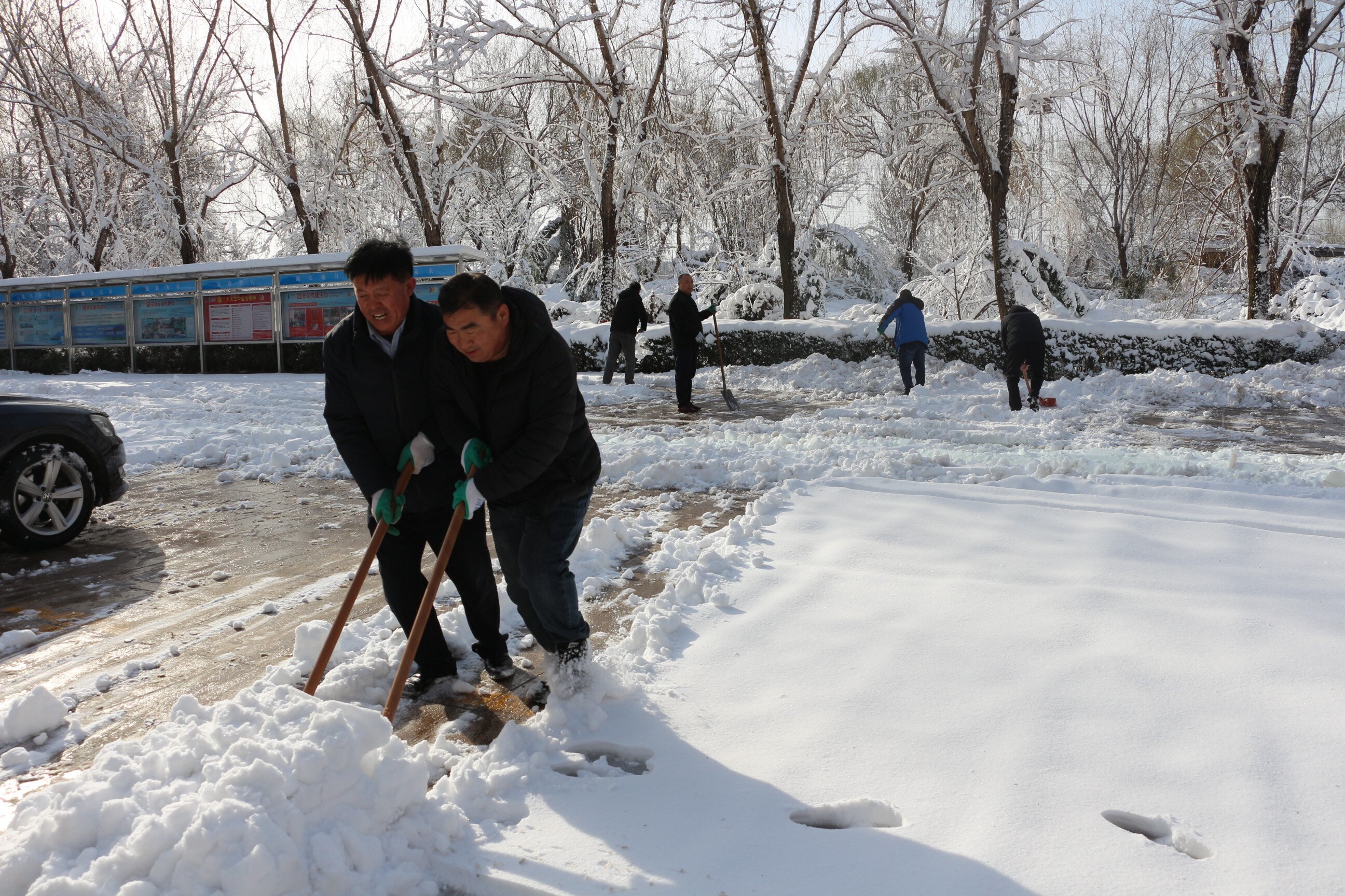 在鄒平眾興廠區(qū),黨員干部帶頭手持推雪鏟、鐵鏟等清雪除冰設(shè)備,向大面積的雪面“進(jìn)攻”,將通往辦公樓、化驗(yàn)樓、食堂等路面作為重點(diǎn)清理區(qū)域。經(jīng)過2個(gè)多小時(shí)的協(xié)力奮戰(zhàn),路面基本清理干凈,為生產(chǎn)運(yùn)行和員工安全出行提供有利保障。