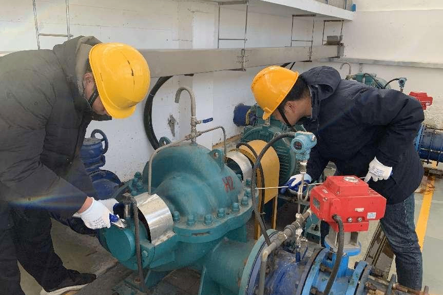 在原水板塊,工作人員迅速進(jìn)入工作狀態(tài)。為確保開工供水安全,工作人員加強(qiáng)了對(duì)水庫、泵站等重點(diǎn)設(shè)施的巡查維護(hù),團(tuán)隊(duì)24小時(shí)輪班值守,實(shí)時(shí)監(jiān)測水位、水質(zhì)變化,及時(shí)排查設(shè)備隱患,確保原水供應(yīng)穩(wěn)定?!伴_年就是沖刺,我們必須確保每一滴原水安全輸送?!?/p>