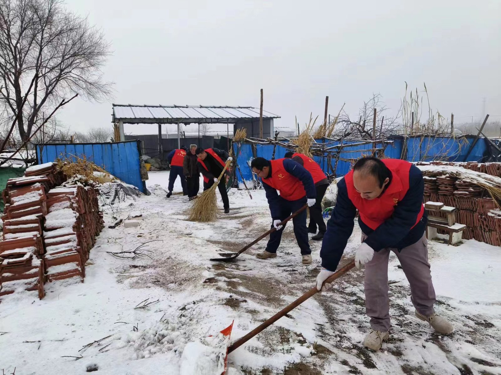 一大早,支部書記胡景青同志帶領(lǐng)黨員干部,拿著掃帚鐵鍬等工具趕往居民區(qū),為沒(méi)有勞動(dòng)能力的孤寡老人清掃門前積雪。掃雪現(xiàn)場(chǎng),大家發(fā)揚(yáng)團(tuán)結(jié)協(xié)作,不畏嚴(yán)寒的精神,在刺骨的風(fēng)雪里,吹響了一鼓掃雪除冰,錘煉黨性集結(jié)號(hào)。黨員干部手握掃帚、鐵鍬,你鏟我掃,相互配合,熱鬧忙碌的氛圍驅(qū)散了雪天的寒冷。經(jīng)過(guò)兩個(gè)多小時(shí)的勞動(dòng),房前屋后的積雪被掃得干干凈凈。為孤寡老人門前鏟出了一條暖心安全道路,贏得了社區(qū)居民的一致好評(píng)。